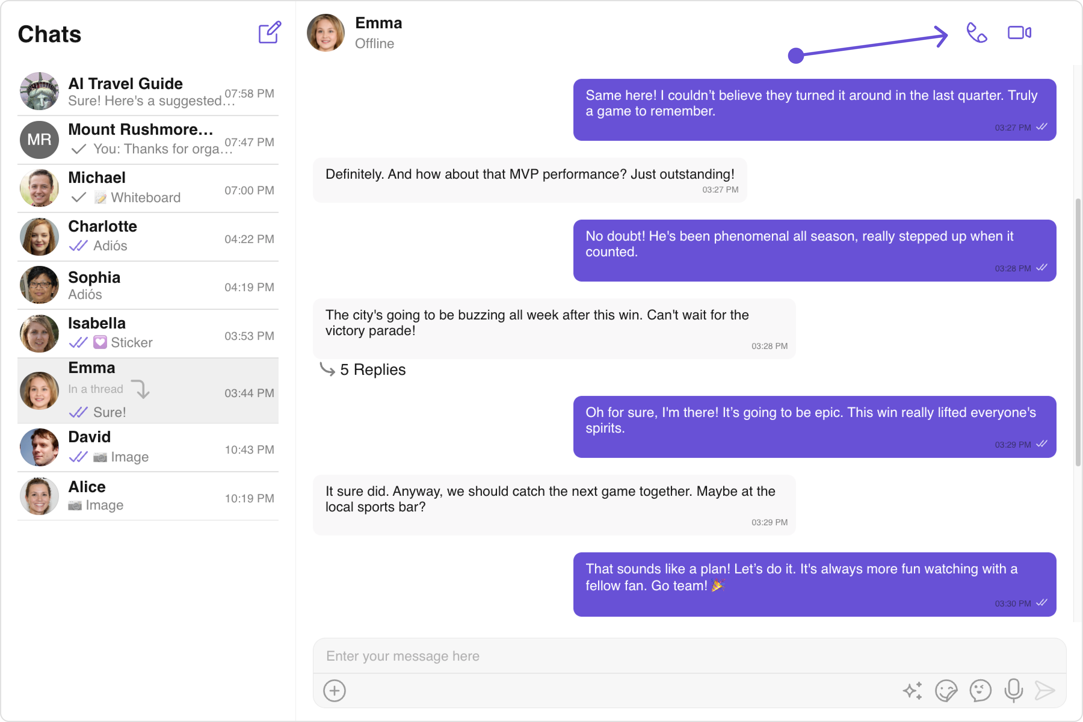 The OngoingCall component is the user interface that displays during an ongoing call. For an audio call, this screen displays the participant’s name, call duration, and buttons to mute the audio, enable or disable video, switch the camera, and end the call. For a video call, the Call Screen might additionally display the video footage from both the user’s camera and the recipient’s camera.