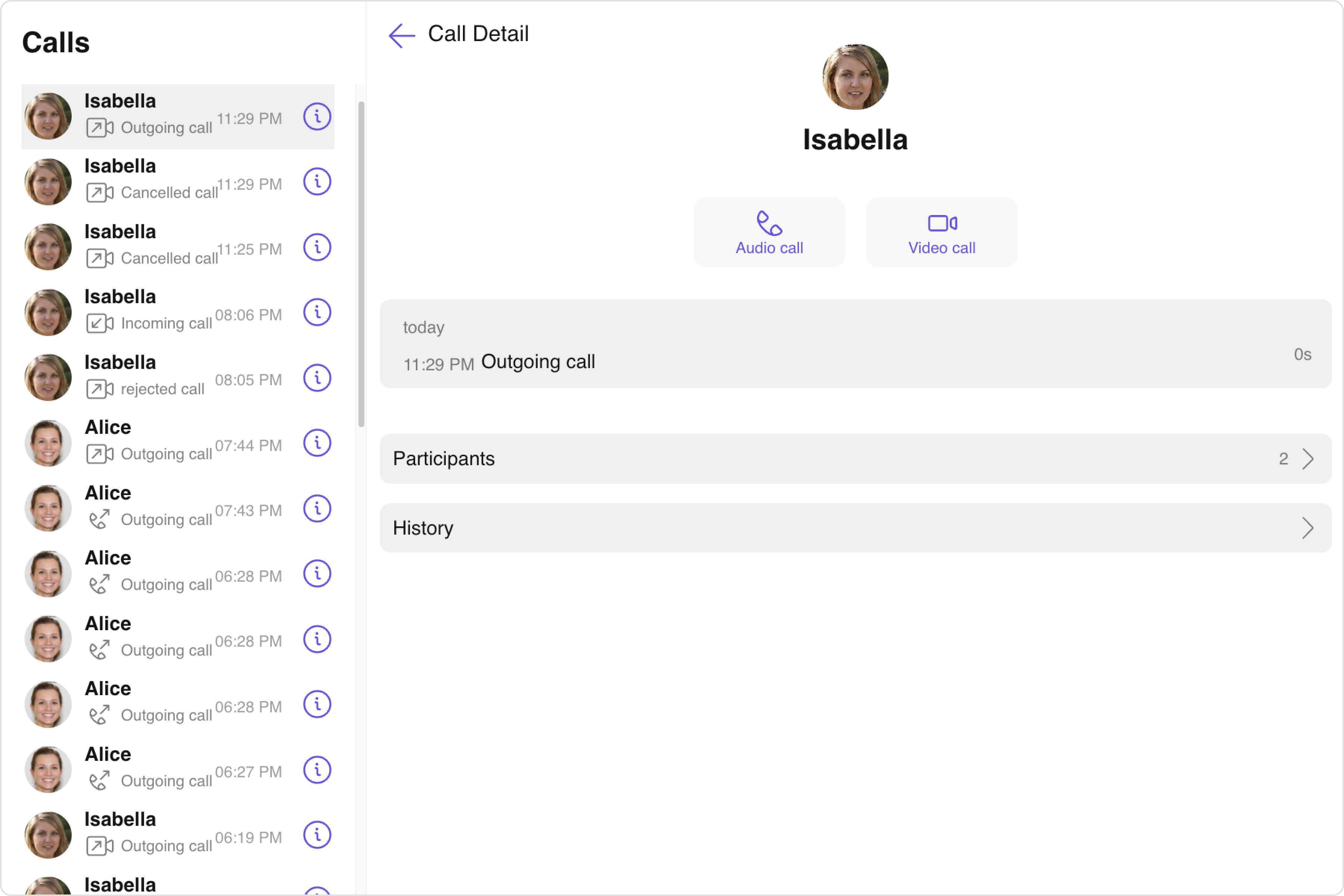 Call Logs component provides you with the records call events such as who called who, the time of the call, and the duration of the call. This information can be fetched from the CometChat server and displayed in a structured format for users to view their past call activities.