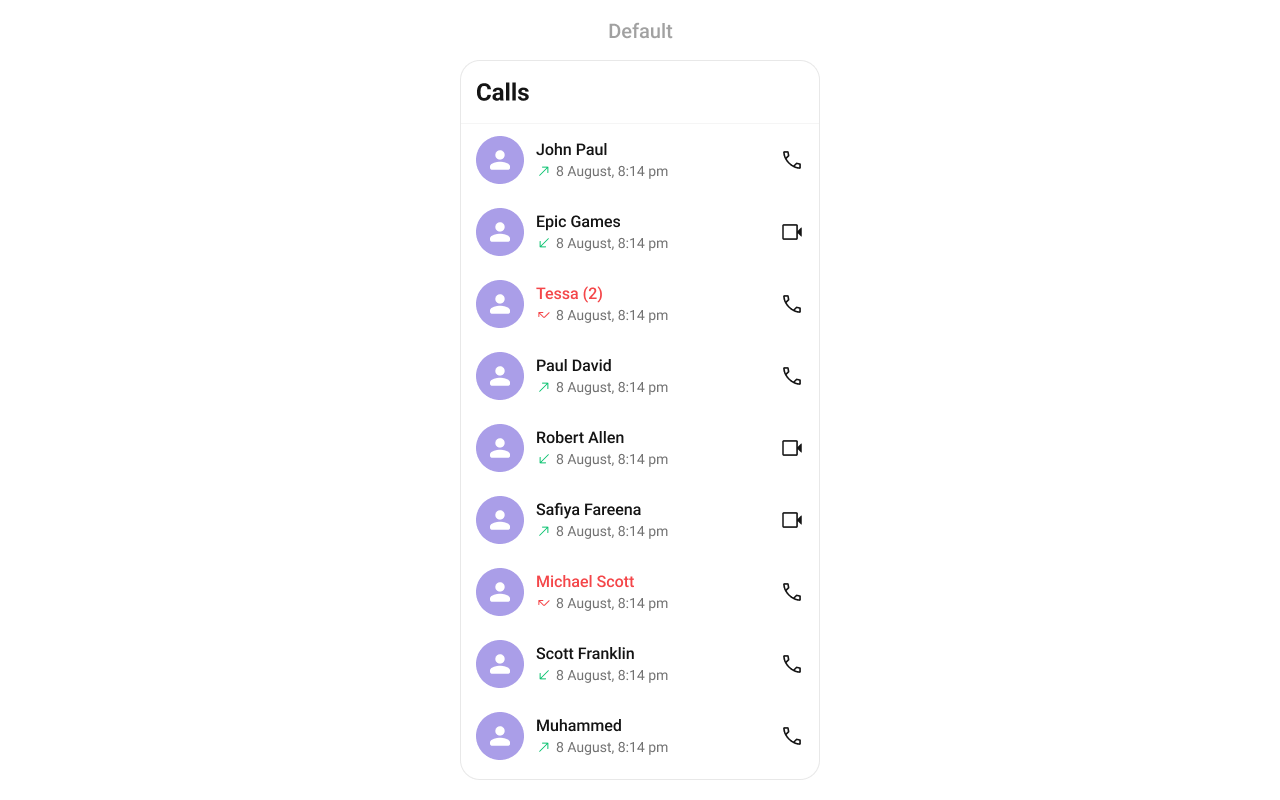 Call Logs component provides you with the records call events such as who called who, the time of the call, and the duration of the call. This information can be fetched from the CometChat server and displayed in a structured format for users to view their past call activities.